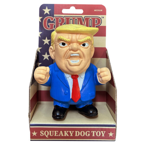 Love him or hate him it’s a toy with a talking point your dog will have great time playing with their own squeaky little version of POTUS!